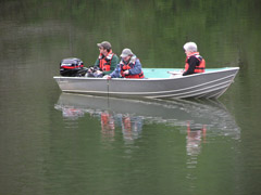 Shown here: Measuring water temperatures in Phoenix Lake with a Hydrolab.Photo by Tom Guldman