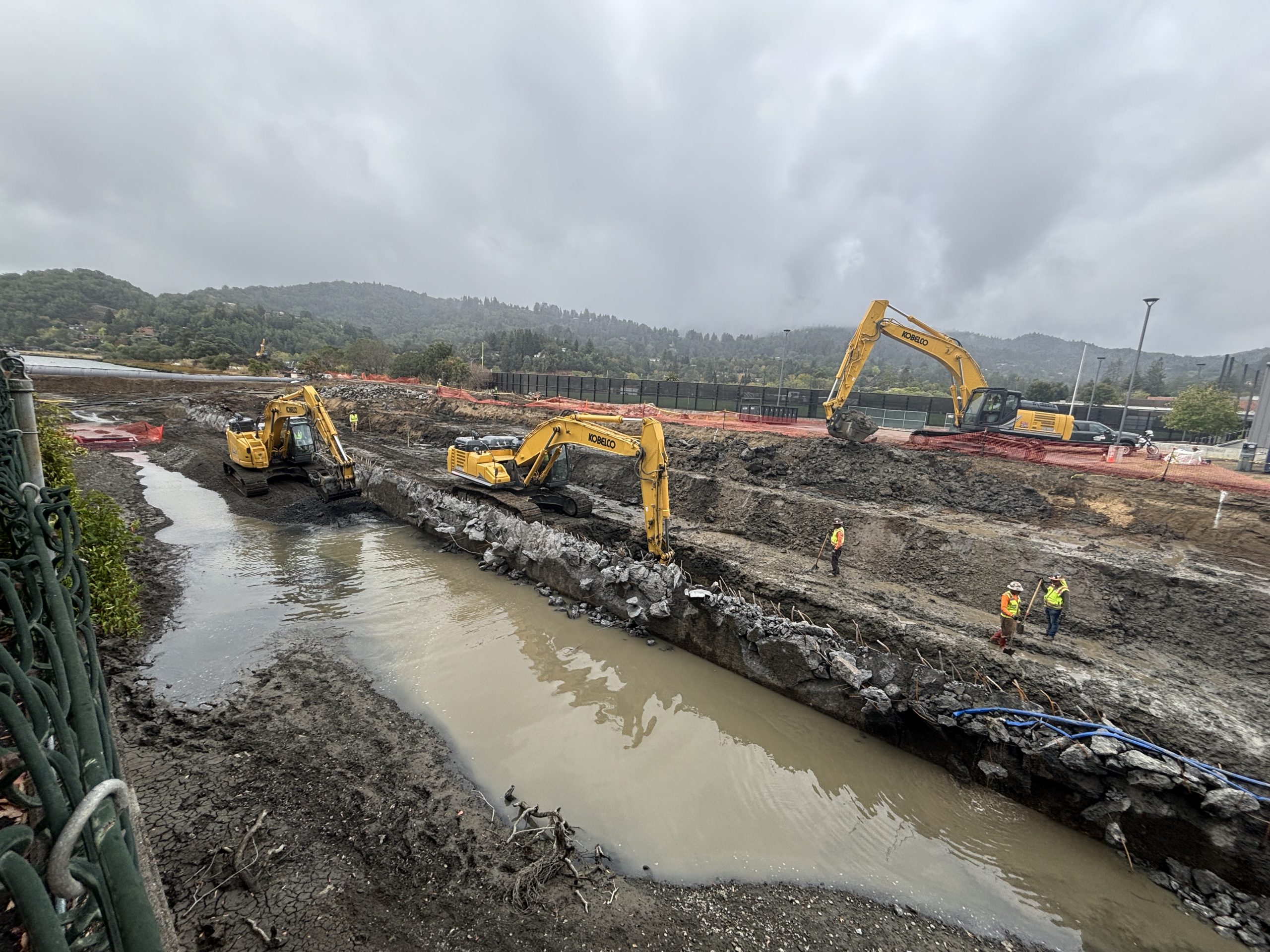 Friends has projects up and down the watershed. We are working on restoring Corte Madera Creek at College of Marin, improving fish passage in Kentfield and San Anselmo and managing habitat enhancement and restoration sites in Kentfield, among other activities.